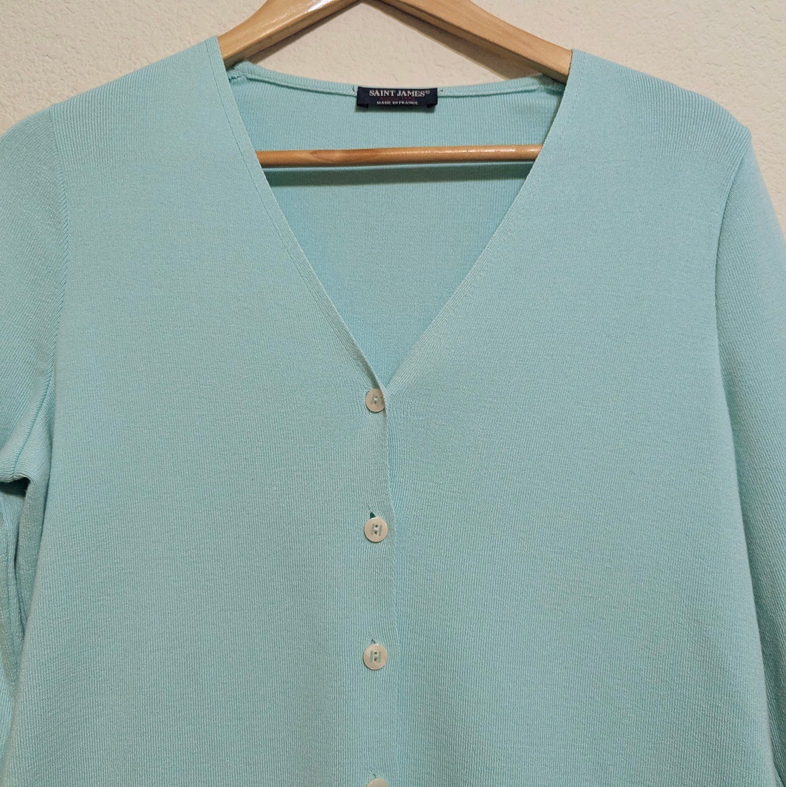 Saint James Women’s Sweater Cardigan Mint Green 100% Cotton Long Sleeve Size 8